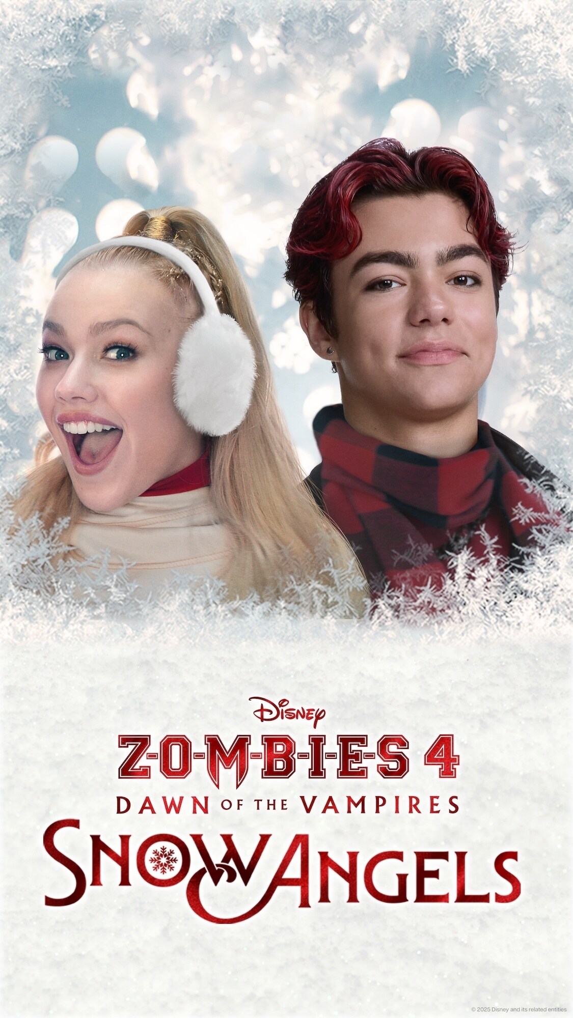 The new music video, “Snow Angels,” features Freya Skye as Nova and Malachi Barton as Victor. Inspired by “ZOMBIES 4: Dawn of the Vampires,” the video reunites the duo as they harness their powers — Nova’s solar flares and Victor’s night winds — to conjure a festive flurry of snow and cheer.